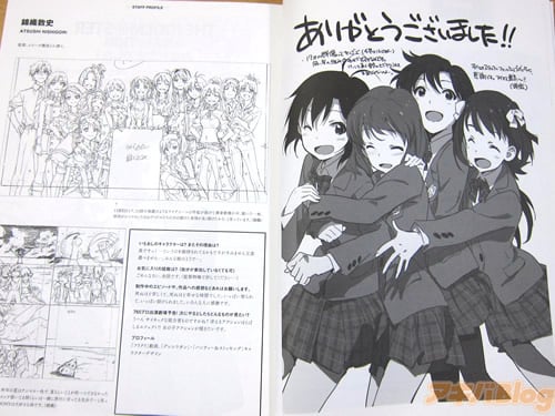 おもにそれぞれのスタッフが手がけた原画や記念イラストを収録し、「制作スタッフアンケート」、「ドキドキ二宮探訪」、「765プロ高木順二朗社長の書道作品」?や、『錦織監督レイアウト修正集』などなど。