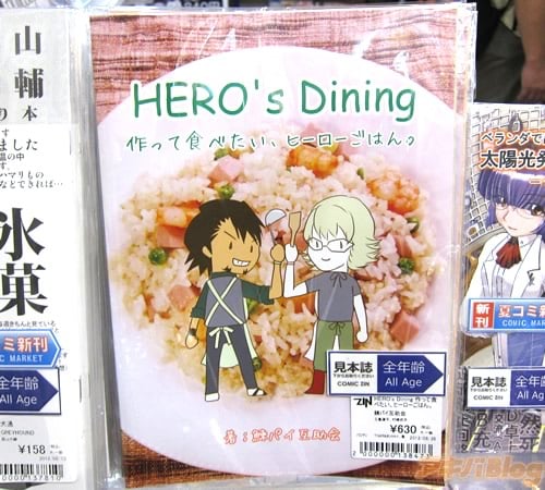 サークル鰊パイ互助会のTIGER&BUNNY料理同人誌『HERO's Dining』がCOMIC ZIN秋葉原店に31日に入荷してた。まえがきによると、アニメ「タイガー&バニー」の作中に登場した料理と、キャラクターからイメージした料理の、レシピと写真を掲載した同人誌で、収録してる料理は「虎徹の炒飯」「スカイハイのバケットBLTサンド」など10品。