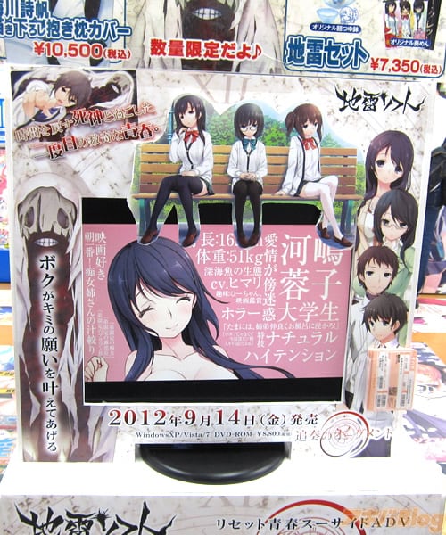 また、ソフマップAM館・アキソフ1号店の両店舗ではゲームの発売日の9月14日から始まる「地雷ソフトイベントグッズ販売」の告知もあり、秋葉原電気街祭りでも販売された『地雷セット』『梅川詩帆描き下ろし抱き枕カバー』『公式原画資料集』を販売するみたい。