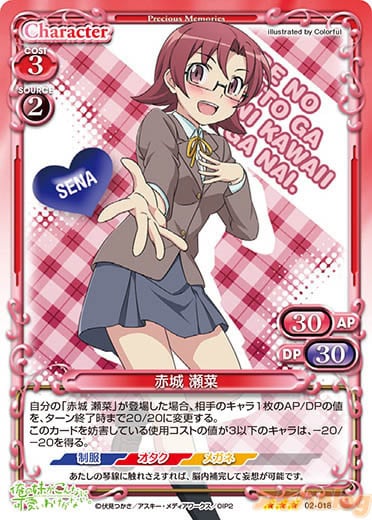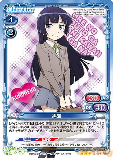 そんなプレメモ&プリコネフェスタ前の最後のプレメモ新弾は「俺の妹がこんなに可愛いわけがない。」スペシャルパック、「ひだまりスケッチ」ブースターパックPart.2の2タイトルです。 公式HPでは本日より全カードテキストの公開が始まっていますが、気になるカードの絵柄を先行でチラ見せします。
