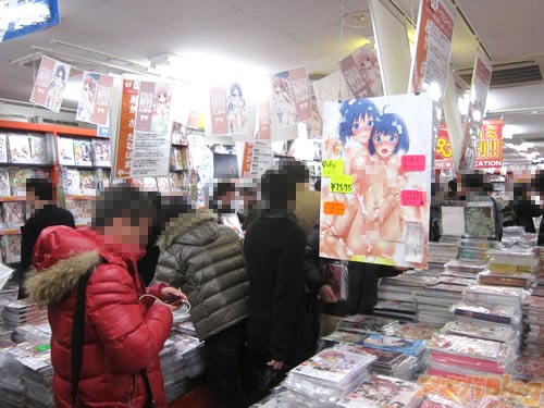 また、冬コミ4日目の秋葉原の同人ショップでは、とらのあな秋葉原店Bは「超拡大すぺしゃる」の一貫として地下に同人誌売り場を拡張し、冬コミ新刊(大人向け同人誌)を販売。メロンブックス秋葉原店は『さあ俺達のコミケが始まったぞ!!』POPも付けてたりで、午後2時前くらいには入場規制がかかってたみたい。