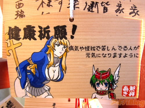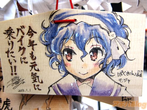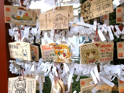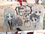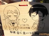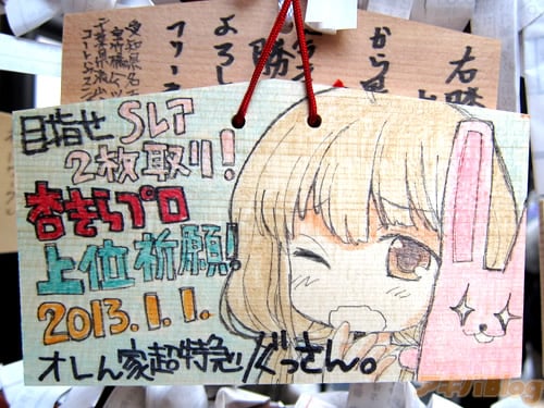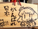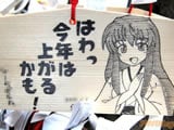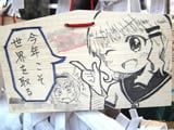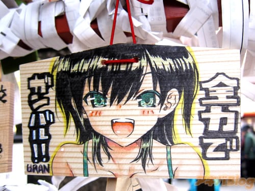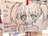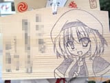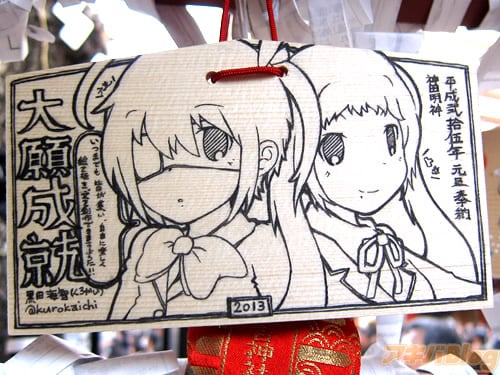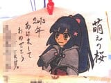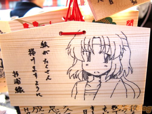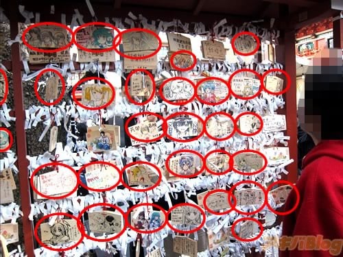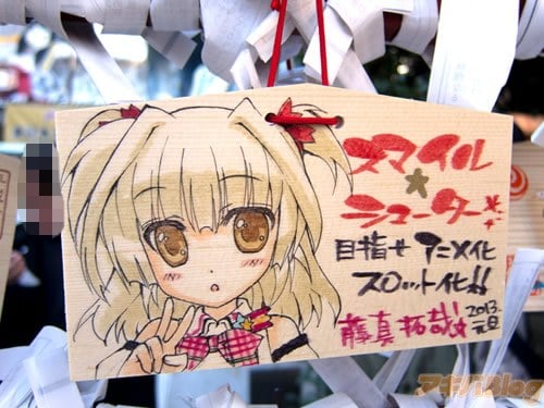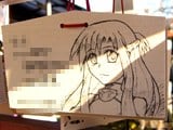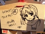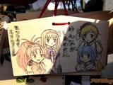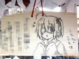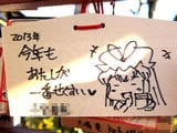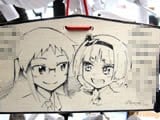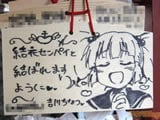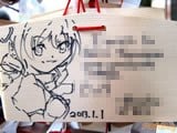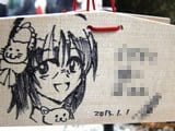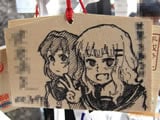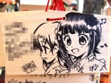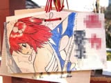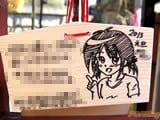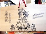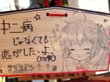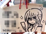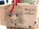 『痛絵馬』とはニコニコ大百科によると『痛い絵馬のことである。アニメやゲーム関係、2chやニコニコの雰囲気を帯びた内容の文が書かれていたり、キャラクターが描かれた絵馬を指すことが多い』というもので、「聖地巡礼」の記念として絵馬に記すケースなどもあるみたい。