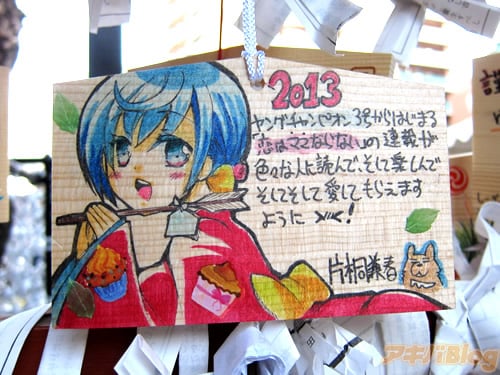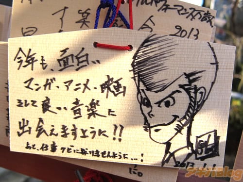 2011年には40枚、そして2012年:70枚位だったものからさらに増加し、本年2013年には煩悩の数とされる108を越えた。プロの漫画家も描いてる神田明神の痛絵馬はこんな感じ。