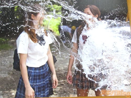 収録写真は、全裸、制服、浴衣などの女性たちが、棒高跳びしながら、ブランコに乗りながら、縁側でスイカを食べながら、洗濯物を干しながらといった、様々なシチュエーションでぶっかけられて、透けブラとかも。また、オッパイぶっかけ、お口ぶっかけなどがあるほか、第1弾の写真集「びしょびじょ」にもあったショベルカーぶっかけも収録。
