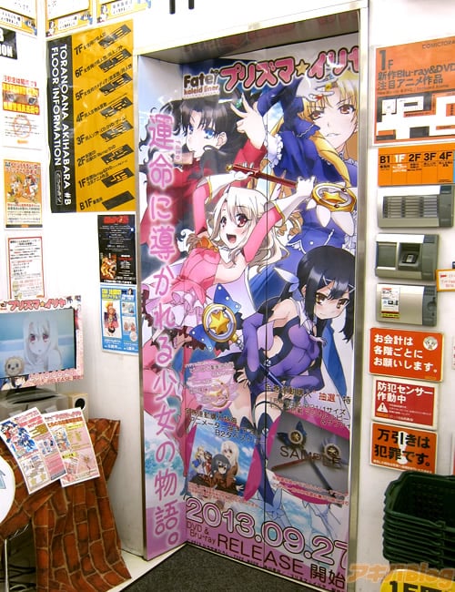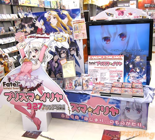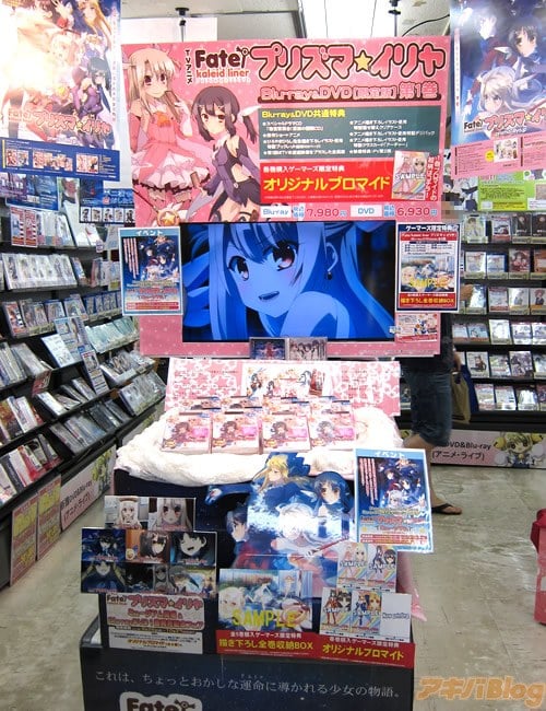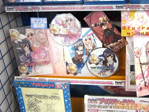 発売日の秋葉原では、BD1巻のサンプル展示や、等身大?パネル、販促ポスターなどを見かけ、とらのあな秋葉原店Bの売り場には声優さんの色紙があったり、プリズマ☆イリヤ仕様になっていた店頭のショーケースではBD全巻購入で抽選に応募できる「1/1スケール マジカルルビー&サファイア」の見本が展示され、ゲーマーズ本店ではBDの発売を記念したイベント「Fate/kaleid liner プリズマ☆イリヤ ミュージアム」も26日から始まってた(10月14日まで)。
