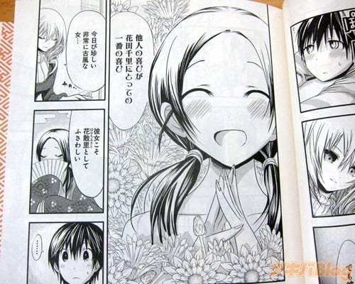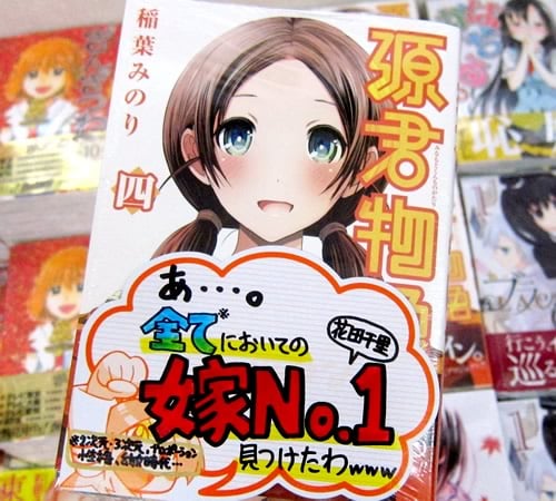 今回発売になった「源君物語」4巻【AA】のオビは『料理、裁縫、お手の物。最強の癒し系ヒロイン。大人気現代源氏プロジェクト』で、14股の3人目となる巨乳癒し系の「花田千里」と一か月限定で恋人になるお話で、とらのあな秋葉原店Aでは『あ…。全て(2次元・3次元・プロポーション、性格、幼女時代)においての嫁No.1見つけたわwww』POPがついてた。