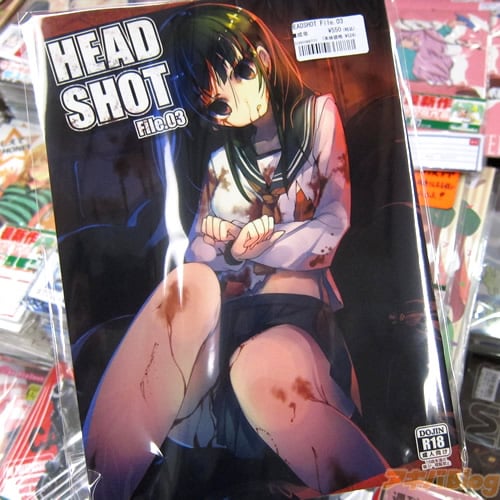 同人誌『HEADSHOT File.03』は、サークルさんの新刊告知によると『「崩壊した世界で二度目の死を迎えたゾンビの女の子」を描いたモノクロイラスト集。ノリノリで書かれたキ●ガイじみた気持ちの悪いポエムまがいのキャプション付き』な、ゾンビ娘リョナイラスト同人誌で、今回でシリーズ3作目で、第1弾ではゾンビ娘が「切断」「保管」「串刺」「爆破」「屍姦」「拷問」「絞殺」「苗床」「出血」「射殺」、第2弾では「飼育」「拷問」「寄生」「蟲姦」「研究」「鳥葬」「切断」「銃殺」だった。