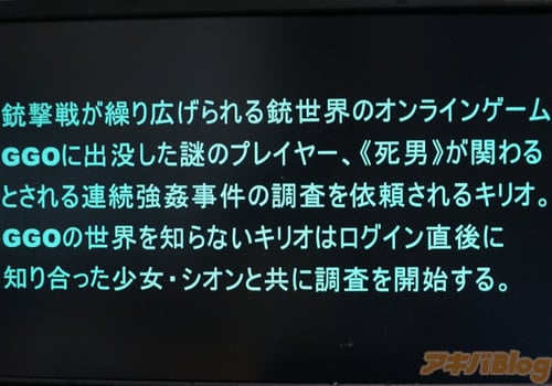 銃撃バトルオンラインゲーム「GGO」に出没した謎のプレイヤー《デッドマン》が関わるとされる連続強姦殺人事件の調査を依頼される"キリオ"は、その世界で出会った女スナイパー"シオン"と共にデッドマンを追いつめる。しかし狡猾なデッドマンの罠にかかり"シオン"は電磁スタン弾を撃たれ、麻痺して動けないまま、ネット上で公開レ◯プされてしまう。