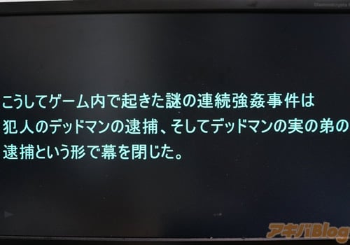 さらにデッドマンにレ◯プされているのと同時刻、現実世界の女子校生の少女"昼田詩織"は不法侵入で部屋に入ってきたデッドマンの仲間の男に「現実」でもレ◯プされてしまう。散々中出しレ◯プをしたデッドマンは、最後にネット上でシオンの処刑を公開しようとする。しかし、危機一髪のところ、キリオが駆けつけるのだった…。 パッケージ裏面