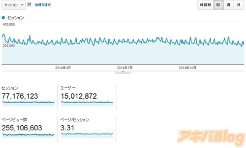 2014年のアキバBlogは、年間のユニークユーザー1501万人で、年間2億5510万PV。