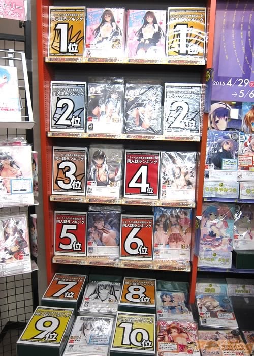 とらのあな秋葉原店Aの6F同人フロアは男性向け成年同人誌のゲーム系「アイマス・ラブライブ・東方・艦これ・美少女ゲーム」を扱っているフロアで、COMIC1新刊の入荷で、艦これ18禁同人誌・ラブライブ18禁同人誌を抑えて、アイドルマスターシンデレラガールズの渋谷凛の同人誌が1位、2位、3位、4位、6位、7位、9位になってた。