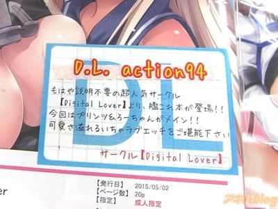 サークルDigital Lover(なかじまゆか氏)のCOMIC1☆9新刊、艦これ同人誌『D.L. action94』が、とらのあな秋葉原店A&Cに9日に入荷した(とら専売)。
