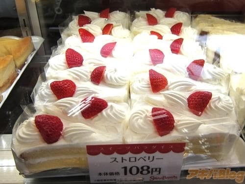 今回オープンした『スイーツパラダイスケーキショップ ヨドバシ秋葉原店』は、オープン前のポスターでは『手軽に買えるお値段で、スタンダードなショートケーキから、季節限定・数量限定のケーキもご用意!』という、持ち帰り専門店舗みたい。
