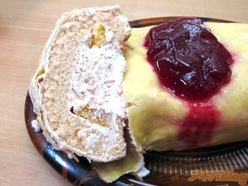 「玉子のようなクレープの中は!なんと!濃厚なチョコレートケーキ」