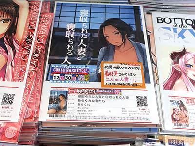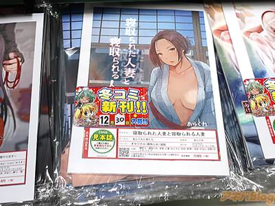 冬コミ新刊の『寝取られた人妻と寝取られる人妻』は、寝取られ済の人妻・由美子が、友人で人妻の歩美を誘い町内旅行の下見として温泉旅行にいくお話で、FANZA同人の作品情報は『女二人旅だと思っていたのに、なぜか夕食の席にいるおじさんふたり。夜這いに警戒する歩美さんだったが、不覚にも酔いつぶれてしまう』で、元グラビアアイドルの人妻・歩美も他人肉棒でヤられ、メロン通販の紹介は『為す術無く寝取られる美人妻に大興奮必至』になってる。