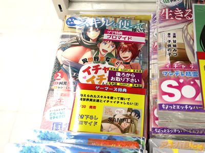 レンキしゅん氏のWeb小説を阿見阿弥(=井ノ本リカ子)氏がコミカライズされ、マンガがうがうで連載中の「与えられたスキルを使って稼いで異世界美女達とイチャイチャしたい」2巻【AA】が、アキバではもう出てる(公式発売日は30日)。