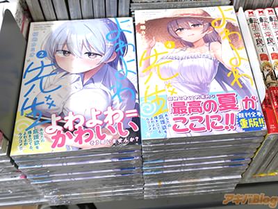 今回発売になった「よわよわ先生」4巻【AA】には第30話〜第38話を収録し、オビ謳い文句は『あなたの庇護欲を掻き立てる、よわよわラブコメ!』、『超絶可愛くて刺激的な「最高の夏」がここに!』、『既刊全巻重版!』で、裏表紙は『白ワンピ!日焼け姿!ラジオ体操!花火大会(浴衣)!夏休みならではの“可愛い”が盛りだくさん♪』だった。