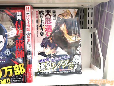 八又ナガト氏の小説を、むらたん氏がコミカライズされている「不遇職【人形遣い】の成り上がり 美少女人形と最強まで最高速で上りつめる」3巻【AA】がアキバではもう出てる。オビ謳い文句は『新登場の美少女人形は、爆乳シスター!?』で、裏表紙は『大波乱の異世界成り上がりファンタジー!』になってた。