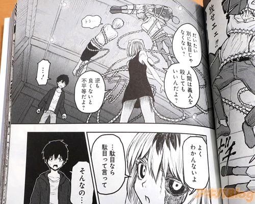 今回発売になった「少女Null」1巻【AA】には、第1話から第5話や、マリーの設定資料を収録(もくじ)し、オビ謳い文句は『彼女の夢が、世界を滅ぼす』、裏表紙は『決めたぁ、人間ども、皆殺しだねーっ♪』だった。