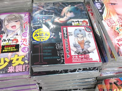 なお、原作:中西鼎氏は「少女Null」1巻【AA】のカバー折り返しで『あきまさんの描くマリーが可愛い!世界観もすごい!時々ある怖めの表現もかっこいい!な本作をよろしくお願いします!』などを書かれ、後書きは『物語はまだ始まったばかりです。マリーの行末は?リアハと特殊公安警察の因縁は?二十三世紀なのに、義人がいる以外はほとんど現代と変わらない。この世界の成り立ちは?義人とは何?などなど、様々なことが明らかになっていく次巻以降もよろしくお願いします』などなど。