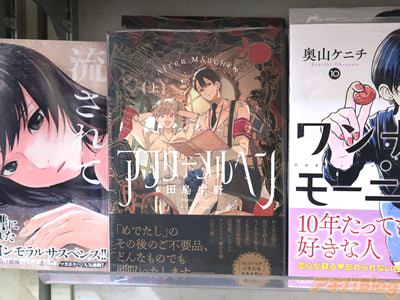 田島生野氏のコミックス「アフターメルヘン」上巻【AA】がアキバでは11日に発売になった。裏表紙は『不思議なメルヘンの世界を舞台に描くダークファンタジー!』で、オビ謳い文句は『おとぎの国で役目を終えたモノを引き取る、とある兄弟の廃品回収物語』、『ご不要品、どんなものでも回収いたします』になってた。