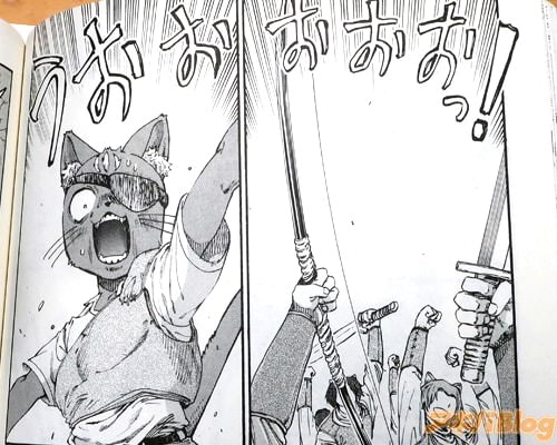 なお、原作:篠浦知螺氏はあとがきで『アツーカ村を旅立つまでのニャンゴの物語、楽しんでいただけましたでしょうか。続きが気になりましたら、4巻まで発売中の小説版も手に取ってみて下さい』、キャラクター原案:四志丸氏は『佐藤先生のペンで輪郭を得たニャンゴの世界はまだまだ、ますます続いていきます』などを書かれ、作画:佐藤夕子氏はカバー折返しで『2巻をお手にとっていただき、ありがとうございます!』などを書かれている。