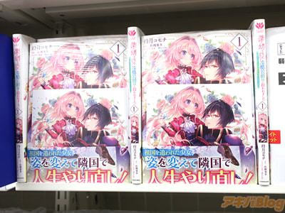 佐槻奏多氏の小説を持月コモチ氏がコミカライズされている「薬で幼くなったおかげで冷酷公爵様に拾われました -捨てられ聖女は錬金術師に戻ります-」1巻【AA】がアキバでは15日に発売になり、オビ謳い文句は『祖国を追われた少女、姿を変えて隣国で人生やり直し!』になってた。