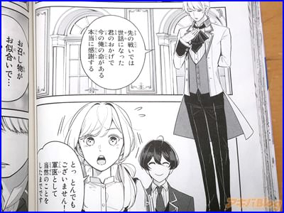 今回発売になったコミカライズ「戦場の聖女」1巻【AA】には第1話〜第4話を収録し、裏表紙は『「醜い役立たず」から溺愛される公爵夫人に!人生逆転マリッジ・ストーリー!』で、オビ謳い文句は『聖女である妹じゃなく、私が妻に…?』、『実の家族から捨てられた少女は公爵夫人として溺愛される――』だった。