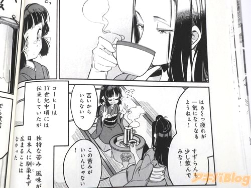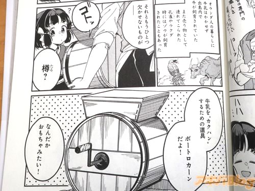 今回発売になった「かむろの異国料理帖」1巻【AA】には、第1話〜第11話と描き下ろし漫画のほか、出島MAPも収録(目次)し、裏表紙は『歴史グルメストーリー、第1巻』などで、オビ謳い文句は『禿(かむろ)とは太夫などの上級の遊女に仕える10歳前後の少女。くずねりとは出島の日本人料理人』、『江戸時代、食の最先端は出島にあり。西洋と日本が交わる唯一の地で少女は生きる』になってた。