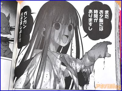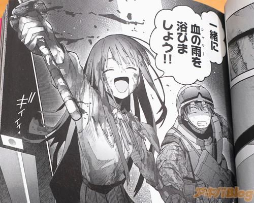 今回発売になったコミカライズ「俺と君達のダンジョン戦争@COMIC」1巻【AA】には第1話〜第4話と描き下ろし漫画、書き下ろし小説を収録(もくじ)し、折込チラシは『その探索者、人類最強(他力本願)』で、オビ謳い文句は『一緒に血のシャワーを浴びましょう?』、『最強災厄系ヒロイン×慎重系ヒーロー。ゆるっとすべてをなぎ倒す、前人未踏のダンジョンファンタジー!』などになってた。