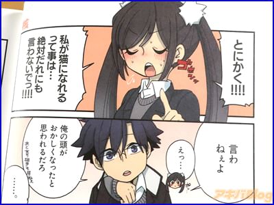 NOBEL氏のフルカラーコミックス「猫の手だって役に立つ」1巻【AA】がアキバでは11日に発売になった。裏表紙は『愛でていた猫の正体は、隣の席のクラスメイト!?』などで、オビ謳い文句は『猫!?それとも人!?人間に変身できる猫のみーちゃんの、猫まみれラブコメ!』だった。