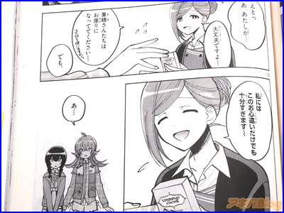 今回発売になった「シャニマス 事務的光空記録」1巻【AA】には、第1話から第5話と特別編「Spread the Wings!!」を収録し(もくじ)、通常版の裏表紙は『はづきさんって、どんな人…?』、通常版オビ謳い文句は『更新のたびにSNSでトレンド入り!話題の「シャニマス」新解釈、待望の第1巻』、『アイドルを“輝かせる”ものの物語』だった。