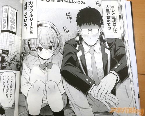 今回発売になったコミックス「三枝さんはメガネ先輩と恋を描く」1巻【AA】には第1話〜第7話と、ショート漫画3編、描き下ろし漫画「先輩とキス」を収録(もくじ)し、オビ謳い文句は『湿度が高い女の子と付き合ったら…愛が重い』、裏表紙は『初めてできた彼女はクールで美人…だけど、とんでもなく嫉妬深くて、取られないようにHに迫ってくる♥』で、販促POPは『ダウナー後輩×メガネ先輩がおくる糖質1000000%イチャラブコメディ!』になってた。