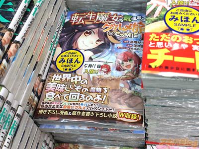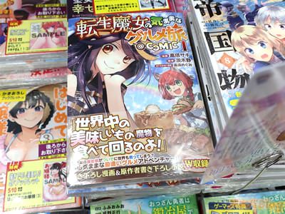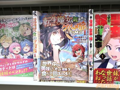 茨木野氏の小説を高塔サチ氏がコミカライズされている「転生魔女の気ままなグルメ旅@COMIC」1巻【AA】がアキバではもう出ていて、オビ謳い文句は『世界中の美味しいものを食べて回るのよ!』、『食欲満点魔女様がついでに世界も救ってしまう?自由気ままな勘違いグルメアドベンチャー!』などなど。