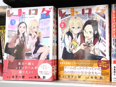 今回発売になったコミックス「レトロゲ」2巻【AA】には第11話〜第20話を収録し、折込チラシは『レトロゲームが繋ぐ、現役女子高校生たちのゆるふわ青春ストーリー!』、『2Pゲームでさらに深まるふたりの友情!』で、オビ謳い文句は『ゲームばっかりやっていた、あの頃の少年少女たちへ』、『話題の青春レトロゲームコミック――!実在のレトロゲームが続々登場!』になってた。