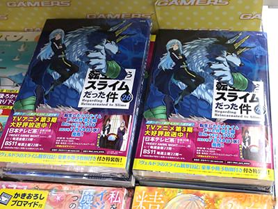 伏瀬氏の小説を、川上泰樹氏がコミカライズされている「転生したらスライムだった件」26巻特装版【AA】がアキバでは5日に発売になった。オビ謳い文句は『世界シリーズ累計4,500万部突破!』で、コミックス情報は『開国祭二日目。武闘大会の準決勝では、ゴブタ対謎の獅子覆面の対決が始まる』などなど。