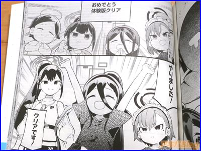 今回発売になったコミックス「ブルーアーカイブ ゲーム開発部だいぼうけん!」1巻【AA】には、第1話〜第7話と描き下ろしおまけ漫画を収録(もくじ)し、メロンブックス秋葉原1号店では複製原画の展示も行われていたほか、オビ謳い文句は『これは夢と友情と青春の物語――』、『SNSで話題沸騰中!大人気アプリゲームの新作スピンオフコミック!』で、裏表紙は『ようこそ!ゲーム開発部の可愛いと面白いがた〜くさんある場所へ!』になってた。