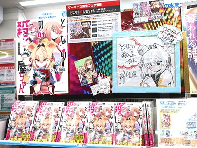 なお、作者:ジェイ・加藤氏は、カバー折返しで『「殺し屋ちゃん」の世界へようこそ!末永くお付き合いいただけるよう、これからも精進します』、あとがきで『苦労した分だけ、こうして単行本を出すことができた喜びもひとしおです』などを書かれ、アキバではゲーマーズ本店にサイン色紙の展示もあった。