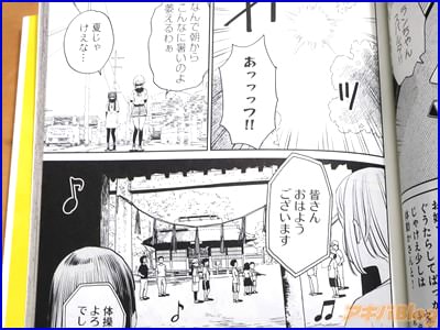 今回発売になったコミックス「サボタージュ・サマー」1巻【AA】には、第1話「ミナトとラン」〜第10話「ひまわりの道標」と「おまけマンガ」を収録(もくじ)し、オビ謳い文句は『この夏は休むことにしました』で、裏表紙は『水遊び、草すべり、ラジオ体操。大人がうらやむ、こどもの夏休みを大満喫!』などだった。