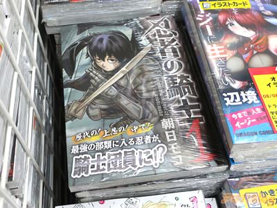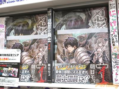 朝日モコ氏の初単行本「忍者の騎士」1巻【AA】がアキバでは6日に発売になった。折込チラシは『彼の名は、内藤。東の島国・ジパング出身の、ぱっとしない新人騎士だ』などで、オビ謳い文句は『歴代の!上忍の!中で!最強の部類に入る忍者が、騎士団員に!?』だった。