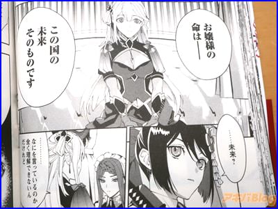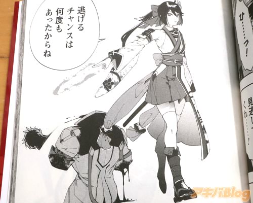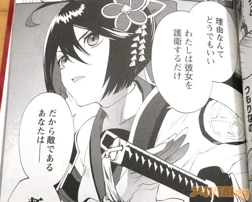 今回発売になった「“人斬り”少女、公爵令嬢の護衛になる THE COMIC」1巻【AA】には第1話〜第5話と、書き下ろしSS「ハインの判断」を収録(もくじ)し、オビ謳い文句は『この身と刀は1人の少女を護るため』で、裏表紙は『敵であるなら斬り伏せる』、『無罪の人斬り侍少女×亡命する公爵令嬢。二人の逆転劇を見届けよ』になってた。