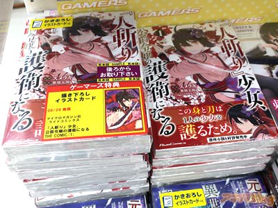 笹塔五郎氏のライトノベルをスメラギ氏がコミカライズされ、コミックライドで連載中の「“人斬り”少女、公爵令嬢の護衛になる THE COMIC」1巻【AA】(キャラクター原案:ミユキルリア氏)が、アキバでは27日に発売になった(公式発売日は29日)。