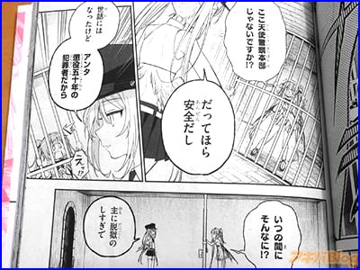 今回発売になった「カルネアデス」1巻【AA】には、第1話〜第4話とオマケ漫画1〜11を収録(目次)し、裏表紙は『rurudoオリジナルキャラクター小説、待望のコミカライズ第1巻!』で、オビ謳い文句は『美しき世界を乙女たちが駆け巡り争う、サスペンス・ファンタジー開幕!』、『エリートツン天使×泣き虫悪魔の相性最悪バディが怪異事件を暴く!』だった。
