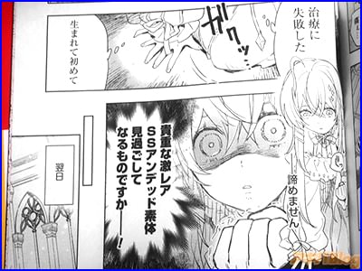 コミカライズ「ホーリーアンデッド」1巻【AA】には、第1話〜第7話と描き下ろし予告を収録(目次)し、裏表紙は『世間を騒がせた【黄泉の王】フランケル。強大な死霊術士だったがついに討伐され、秘術による転生でなぜか女の子に!』で、キネティックノベルスTwitterの発売告知は『ぼっち系ネクロマンサーが美少女に転生するも、なぜかちょっとズレてしまうどたばたコメディ』などなど。