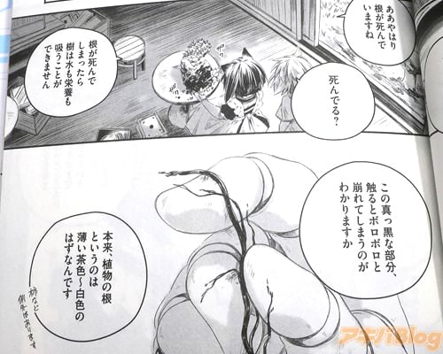 今回発売になった「盆百千栽」1巻【AA】には、第1話から第6話や、盆栽コラム漫画、盆栽YouTubeチャンネルの紹介を収録(もくじ)し、カバー下は盆栽勧誘マンガになっていて、オビ謳い文句は『アンドロイド×盆栽=時を超えたヒューマンドラマ!』、『なぜ、自分の寿命より長く生きる植物を育てるのでしょう?』、裏表紙は『これを読めば、あなたも盆栽(と、アンドロイド)が欲しくなる』だった。