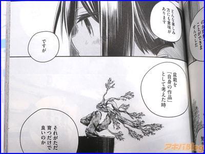 『盆百千栽』は、コミックナタリーによると『主人公は、アンドロイドのカンナ。盆栽屋・季風園の先生のもとで過ごしていたカンナは、盆栽の素晴らしさを語る先生を、不思議な気持ちで見つめていた。それから長い年月が経ち、カンナだけになった季風園に、枯れ果てる寸前の盆栽を手にした少女が訪ねてくる』から始まるお話。
