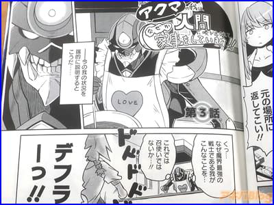 また、コミックス情報は『命と引き換えに願いを叶えてやろう!……じゃあ家事をして。強者蔓延る魔界にあって、圧倒的ナンバーワンの座に君臨するアクマ・デフラー。だがデフラーが求めるのは、魔界のみならずすべての世界でナンバーワン。その野望を果たすため、デフラーは人間との契約に臨む。契約者の願いを叶えるのと引き換えに奪った魂を喰らうことで、スーパーパワーを手にすることができるのだ……!アクマの標的となったのは、小学生の妹と二人暮らしをしている19歳の王覇者城しずか。自らの魂を差し出すほどのしずかの願いは――デフラーに家事をさせることだった。かくして最強を目指すアクマは、家事という名の新たなる戦いへ身を投じるのだった』になってる。