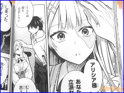 今回発売になったコミカライズ「辺境モブ貴族のウチに嫁いできた悪役令嬢〜」1巻【AA】には第1話〜第5話を収録し、裏表紙は『彼女が「悪役」たる所以は、彼女自身ではなく「乙女ゲー世界のご都合主義」にあって…?迫りくる魔の手を払いのけ、アリシアを破滅の運命(シナリオ)から救うことはできるのか――!?』で、オビ謳い文句は『「悪役令嬢」な嫁を破滅ルートから救えるのは俺だけ!』になってた。