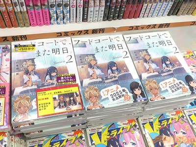 TVアニメが2025年放送予定の、成家慎一郎氏のコミックス「フードコートで、また明日。 Season2」【AA】がアキバではもう出てる。裏表紙は『今日も、どうでもいいけどどうでもよくない話で盛りアガります』で、コミックス情報は『あのJK2人組が新たな四方山話を引っさげ帰ってきた!』などになってる。