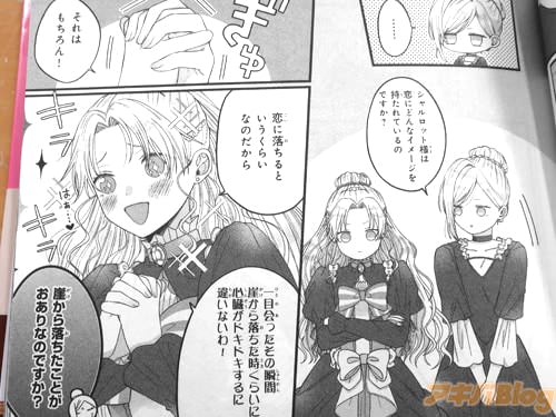今回発売になった「箱入り皇女は至高の恋をお望みです!」1巻【AA】には、第1話〜第3話と描き下ろし漫画「とある皇女と侍女の出会い」を収録(目次)し、裏表紙は『運命の相手に出会うために、お忍びで隣国まで偵察へ!恋にあこがれる奔放皇女は、恋探しの旅行にいきます!?』で、オビ謳い文句は『運命の相手を求めて、勘違いが引き起こす大冒険!(?)』、『美しいこそ正義!』だった。